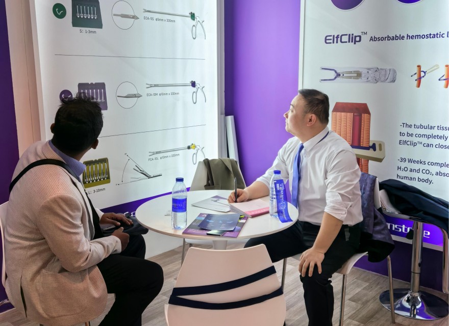 圣石科技此次展出的數(shù)款微創(chuàng)手術(shù)創(chuàng)新醫(yī)療器械產(chǎn)品,憑借其全新的產(chǎn)品設(shè)計(jì)理念,領(lǐng)先的精密工藝技術(shù)和卓越的性能,吸引了來自全球的目光。展位前人潮涌動(dòng),來自中東、歐洲、亞洲及非洲等地區(qū)的客戶和友商紛紛駐足,深入了解產(chǎn)品細(xì)節(jié)并洽談合作。